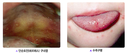 단순포진성 구내염은 헤르페스 바이러스(제1형) 감염이 원인이다.