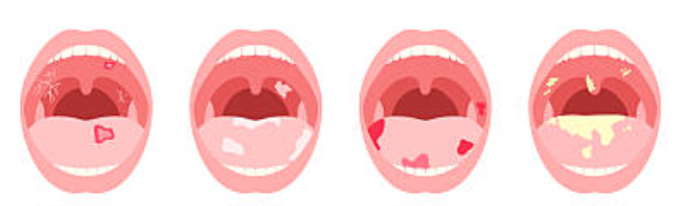 구강칸디다증(candidiasis)은 아구창이라고도 하며 곰팡이가 원인이다. 위생 관리가 불량한 틀니를 사용하거나 소모성 질환 또는 면역질환을 앓고 있는 경우에 흔히 발병한다. 구강 건조증이 있는 사람이나 항생제 복용 후에 나타나기도 한다.