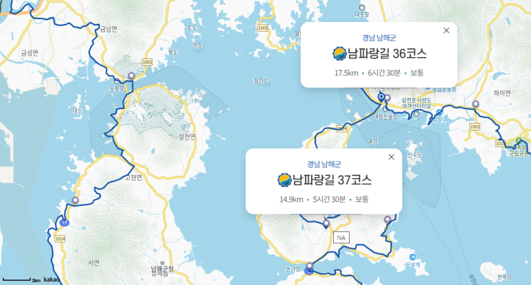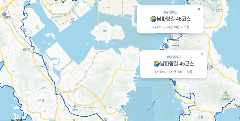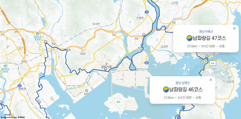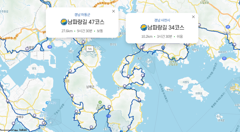 남파랑길 사천 남해 하동 구간 34코스~47코스