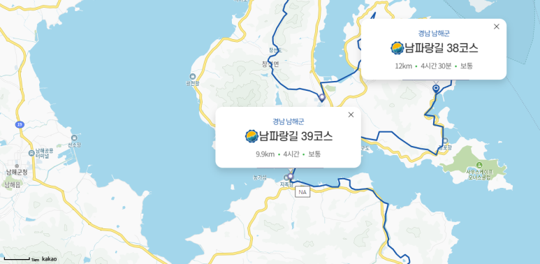 경남 남해군 적량 보건진료소 앞에서 경남 남해군 동부대로 지족어촌 체험마을 앞까지 12km 4시간30분소요 약간 보통걷기