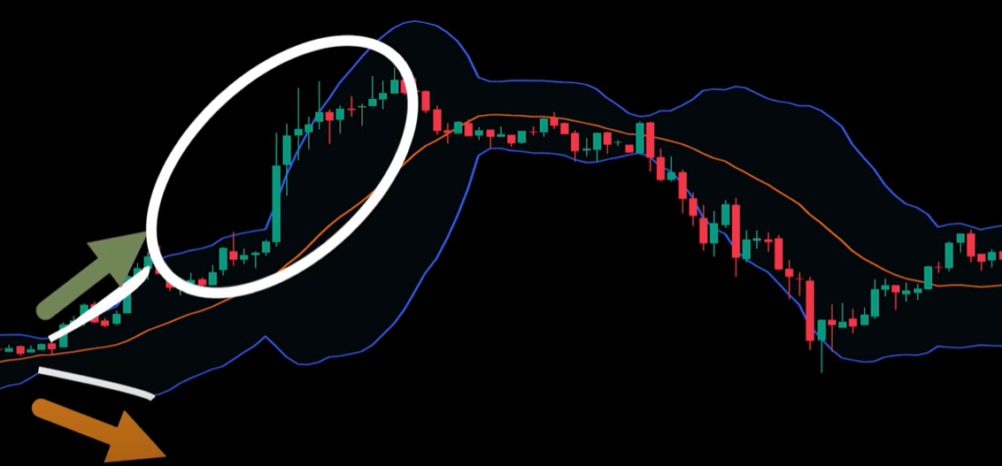 이와 같은 원리를 이용해 밴드 폭의 변화로 미래 가격 움직임을 예측할 수 있습니다