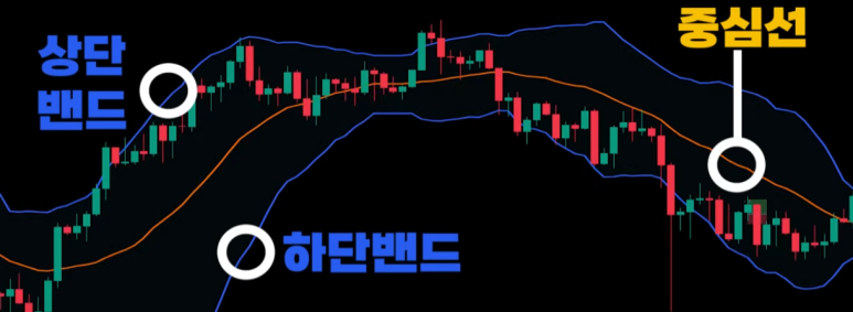 볼린저 밴드는 중심선 상단밴드 하단밴드로 구분한다
