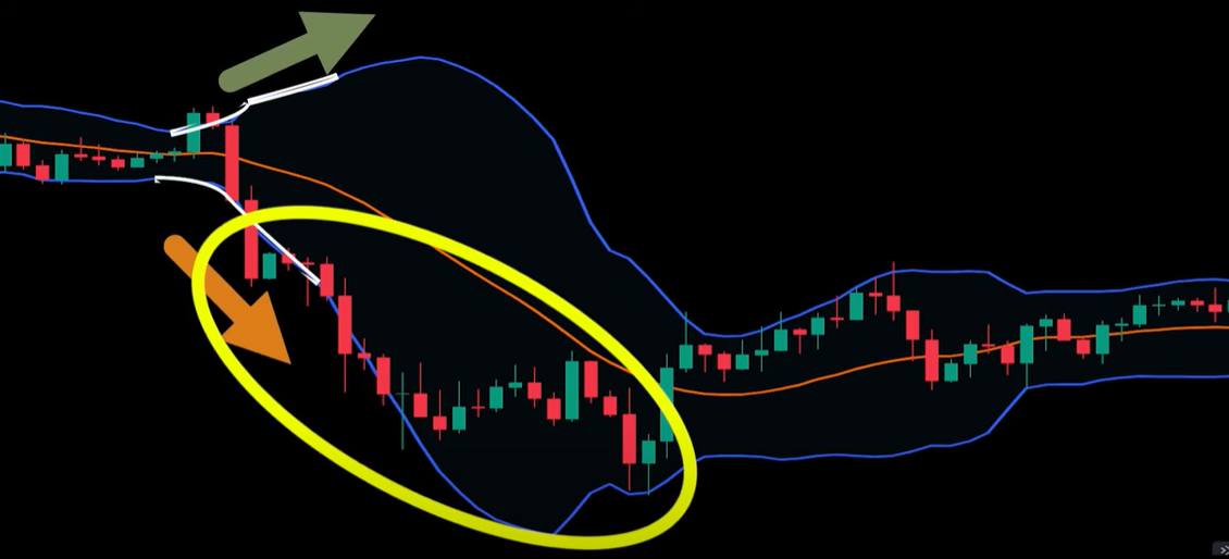 하락 추세에서도 하단밴드는 우하향하고 상단밴드는 우상향하면 추세가 시작됩니다