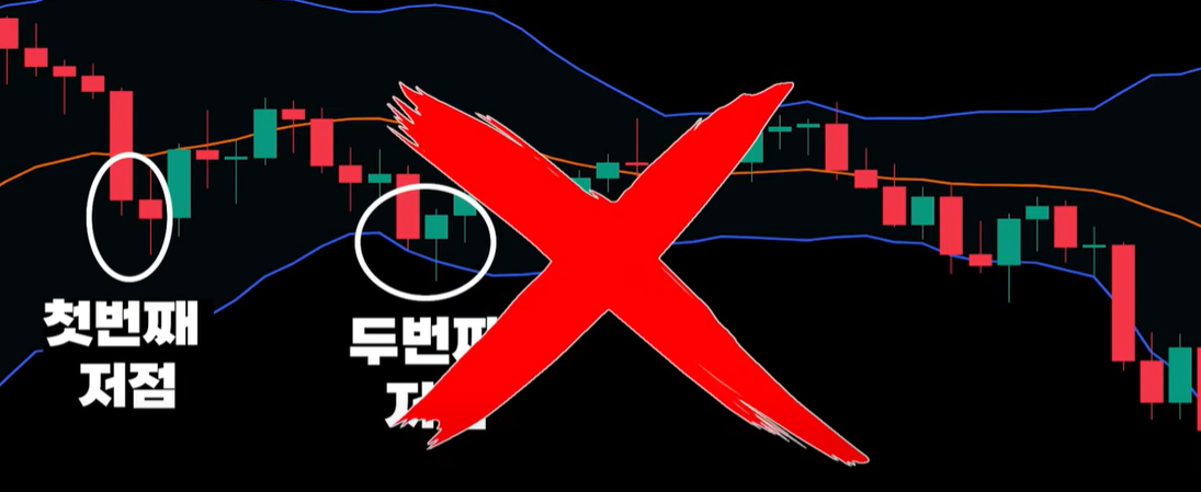두번째 저점이 하단밴드를 이탈해서 발생하고 첫번째 저점보다 낮을 경우는 유효한 W형 패턴이 아닐 수도 있습니다