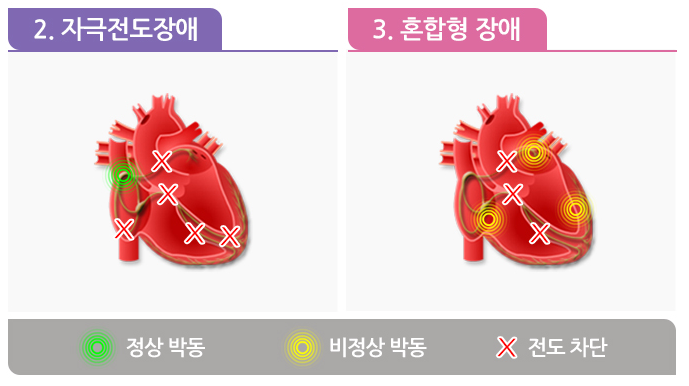 자극형성장애와 자극전도장애가 복합적으로 작용해 발생하는 부정맥을 말합니다.