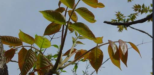 서늘한 기후에서 잘 자라는 편이며, 높이는 10m 내외이다. 나무껍질은 회백색이고 두꺼우며 껍질눈이 많다. 잎은 길이 20-40cm이고 7-19장의 작은 잎으로 이루어진 홀수깃꼴 겹잎이다. 작은 잎은 타원형이고 끝이 뾰족하며 표면에 광택이 난다. 5-6월쯤에 잎겨드랑이에서 황록색의 작은 꽃이 송이 모양으로 핀다. 꽃잎·꽃받침 모두 5장이며 암수딴그루이다. 암꽃에는 암술머리가 3개로 갈라진 암술이 있고. 수꽃에는 5개의 수술이 있다. 열매는 일그러진 구형이고 길이 약 7mm이며 백황색으로 광택이 난다. 재배 후 수년이 지나야 열린다.