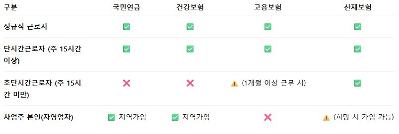 ⑤ 4대보험 가입 신고 국민연금·건강보험·고용보험·산재보험 고용일로부터 14일 이내 신고