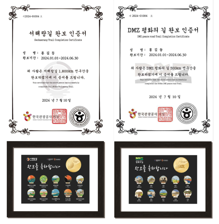 (해파랑길, 남파랑길, 서해랑길, DMZ 평화의 길 완보인증서 발급)