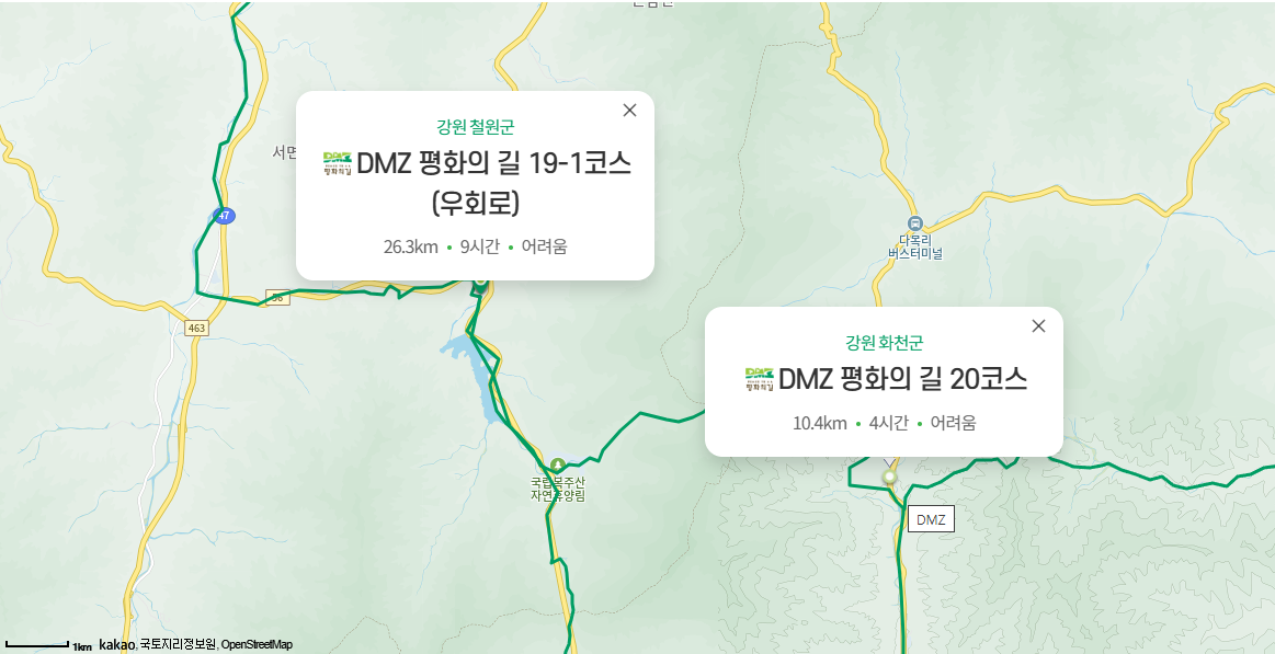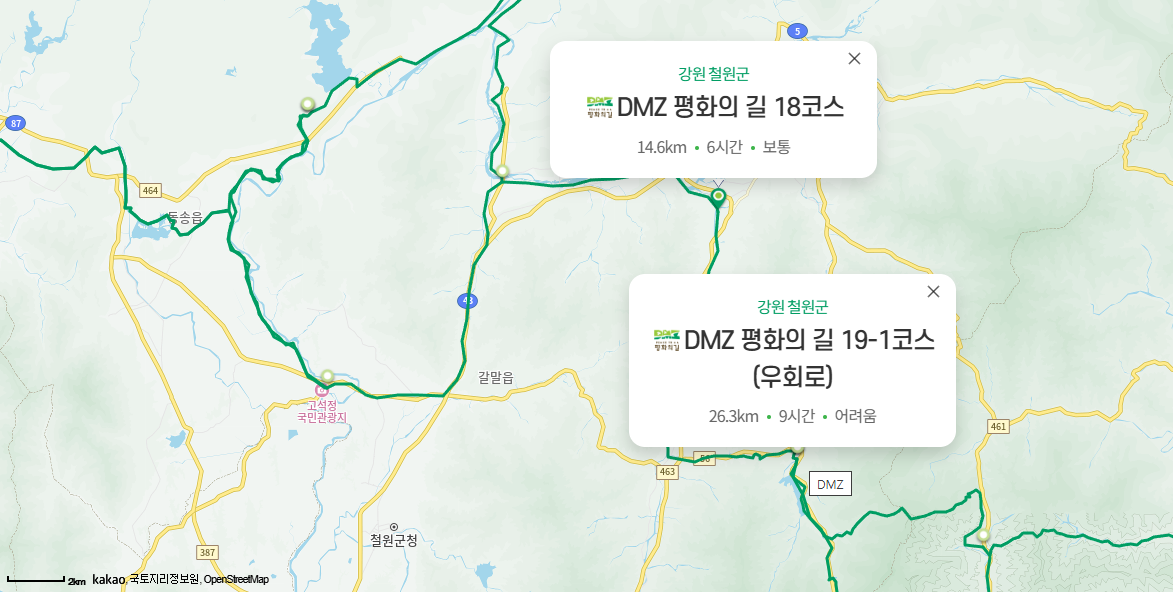 - DMZ 인접 마을을 경유하며 최전방에서 살아가는 사람들의 모습을 엿볼 수 있는 구간이다.