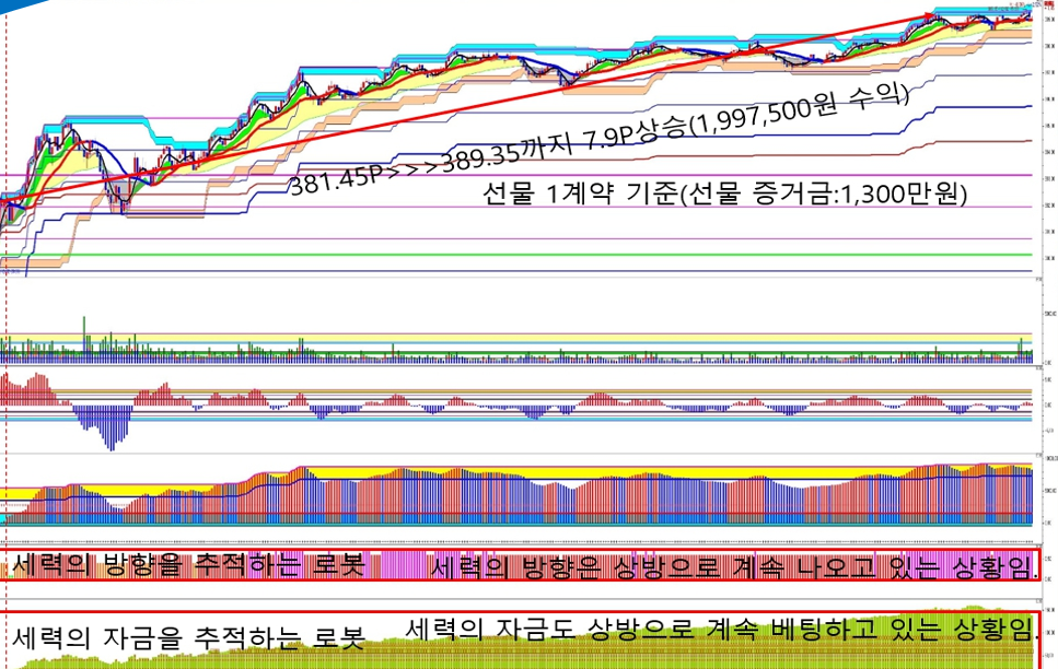이렇게 세력들의 자금을 추적하는 AI봇이 움직여 수익을 만들어내고 있습니다 차트를 보고 색깔만 구분이 가능하면 누구나 쉽게 따라해서 수익을 만들수 있도록 구분하였습니다 빨간색 차트에서 상방 BUY 파란색 차트 하방 SELL 누구나 따라만 하면 수익을 만둘 수 있도록하여씁니다