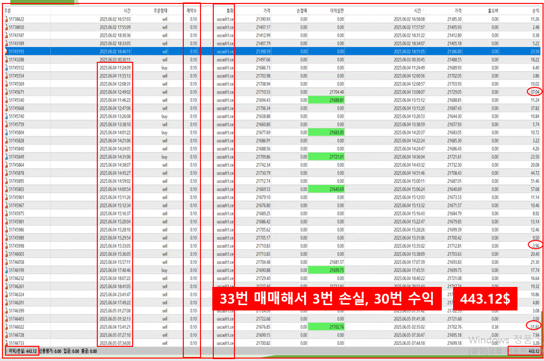 위사진은 주식을 하나도 모르는 24세 여성분의 3일동안의 기록입니다 증거금 1000$ 로 시작하여 3일만에 약 500$ 수익을 만들었습니다 1일 약 14%의 수익률 입니다